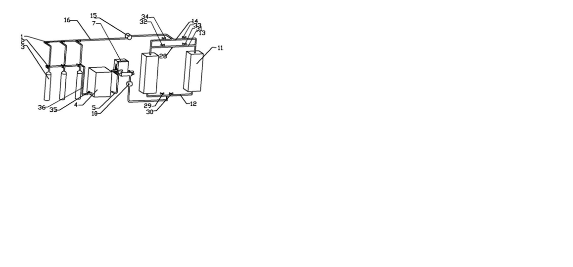 【摘要】本发明公开一种燃料电池尾气回收利用装置,属于燃料电池领域,包括储氢罐、电堆、换热器、热量转换装置、气水分离器、干燥塔、压缩机。储氢罐中的氢气通入电堆发生电化学反应产生电能,剩余的氢气尾气先进入换热器进行热回收,然后依次经过气水分离器、干燥塔、压缩机,最后进入储氢罐。空气通入电堆发生电化学反应产生电能,剩余的空气尾气进入热量转换装置,为热量转换装置提供热量,热量转换装置产生的高温介质进入干燥塔为吸附剂再生提供热量,供热后再次返回热量转换装置。本发明所述的燃料电池尾气回收装置充分回收利用燃料电池尾气中的残余燃料和热量,有利于提高燃料电池的燃料利用率,节约能源,提高发电效率,降低成本。