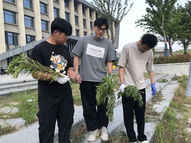 毕业班的李宇轩同学讲到:“长山校区建立时间短,很多绿植成长的不够健硕,想要形成东校区绿植的风貌还需要一段时间,为确保校园绿植有安全的生存环境,绝不能放任外来物种的入侵。作为一名预备党员,我们更当身先士卒,积极响应学校的号召,作为7年的江科大学子,更希望在离校前再为学校贡献自己微薄的力量,希望长山校区更加美丽动人。”